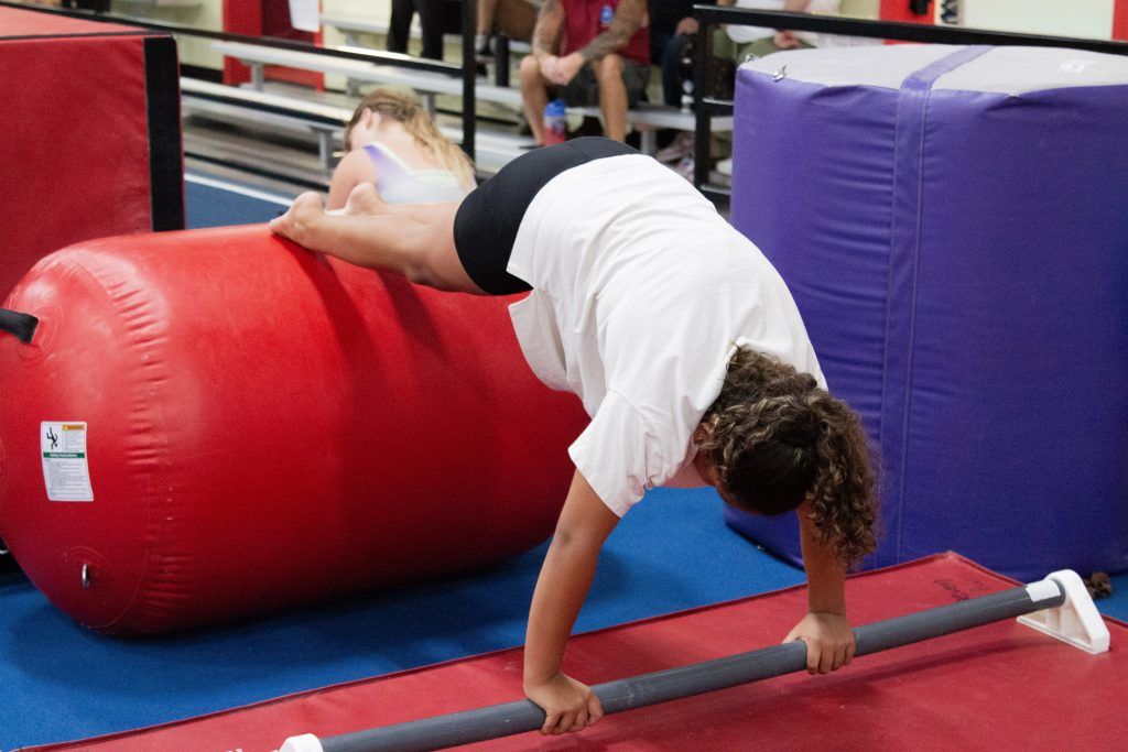 • Skills that include (but are not limited to): forward rolls, backward rolls, handstands, cartwheels, bridges, back bends, pullovers, back hip circles, back handsprings, and front handsprings.